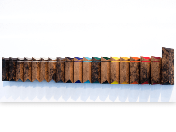 Constructed from horizontal pre-cast concrete cladding units hung from a reinforced concrete frame, the Grade II listed New Street Signal Box’s dramatic, strong sculptural form and now weathered surfaces inspired the following three pieces.